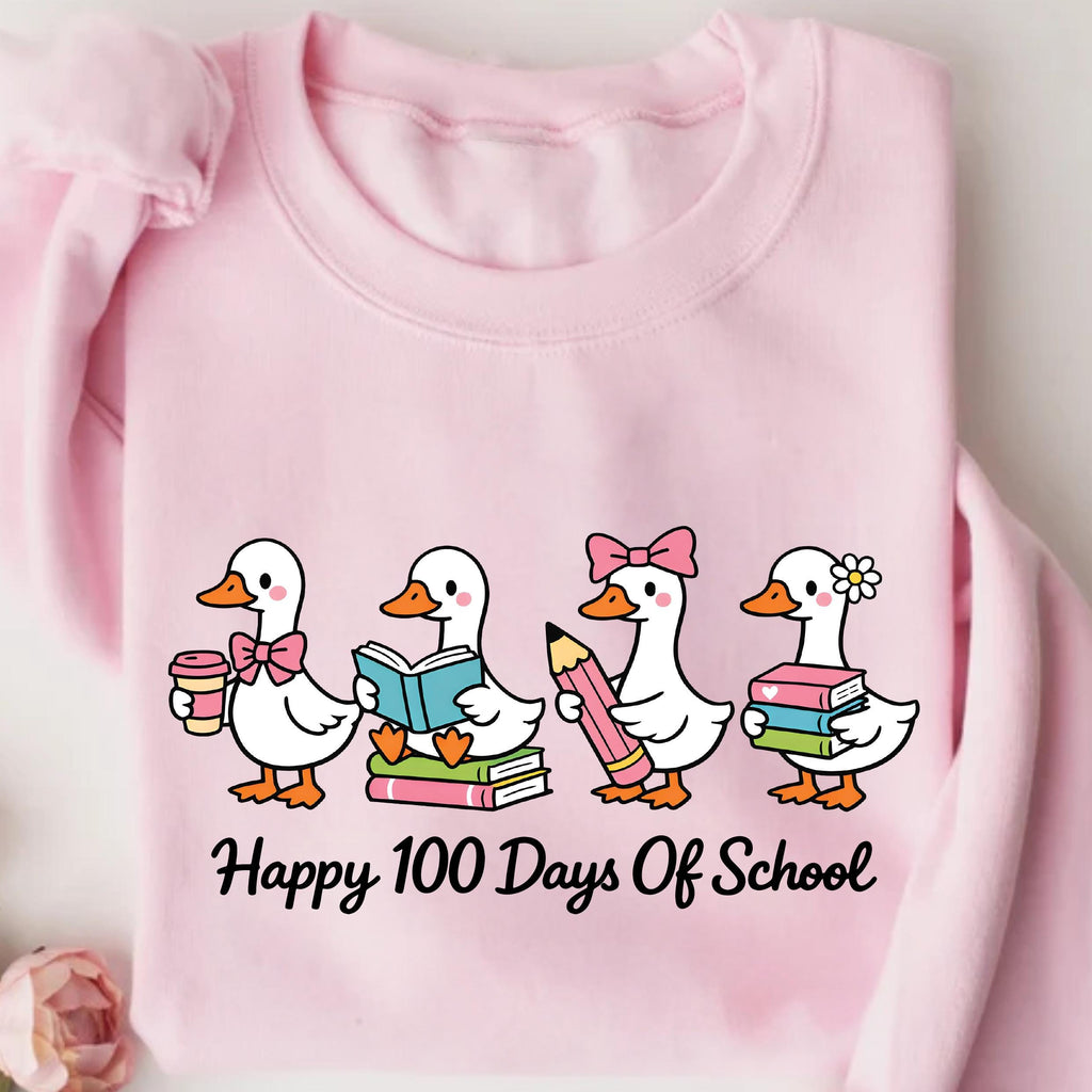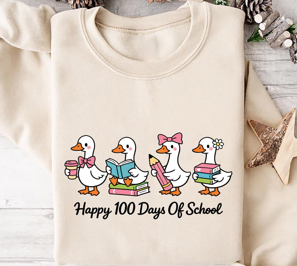 Celebrate the milestone with this adorable “Happy 100 Days of School” silly goose design — perfect for teachers, students, and classroom fun.