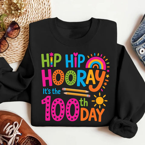 Celebrate the milestone with our Hip Hip Hooray It’s The 100th Day Shirt! Perfect for teachers, students, and classrooms, this fun design adds excitement to the 100th day of school celebration.