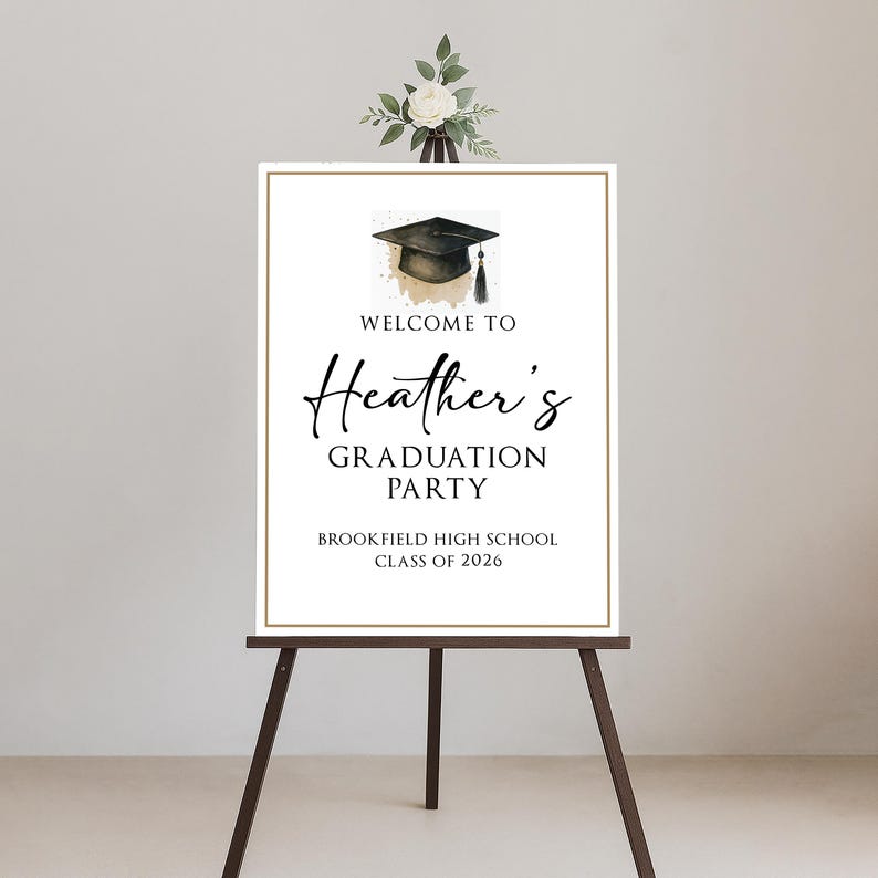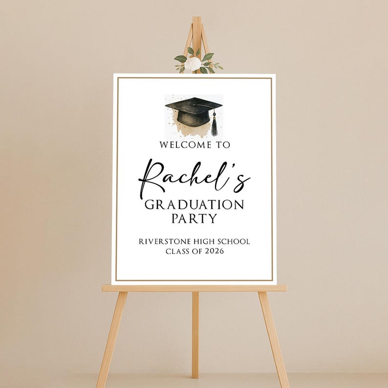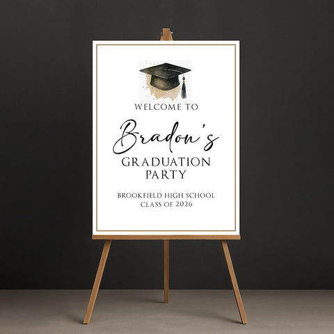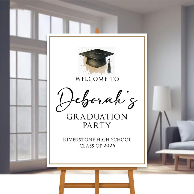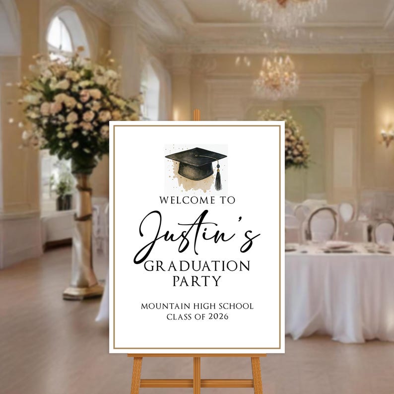 Celebrate your graduate’s big day with this Custom Graduation Welcome Sign, perfect for college or high school grads! Display it at the entrance, photo area, or dessert table for a personalized touch that guests will remember. You can choose from Foamcore, PVC, Acrylic, or Polystyrene materials to match your decor needs.