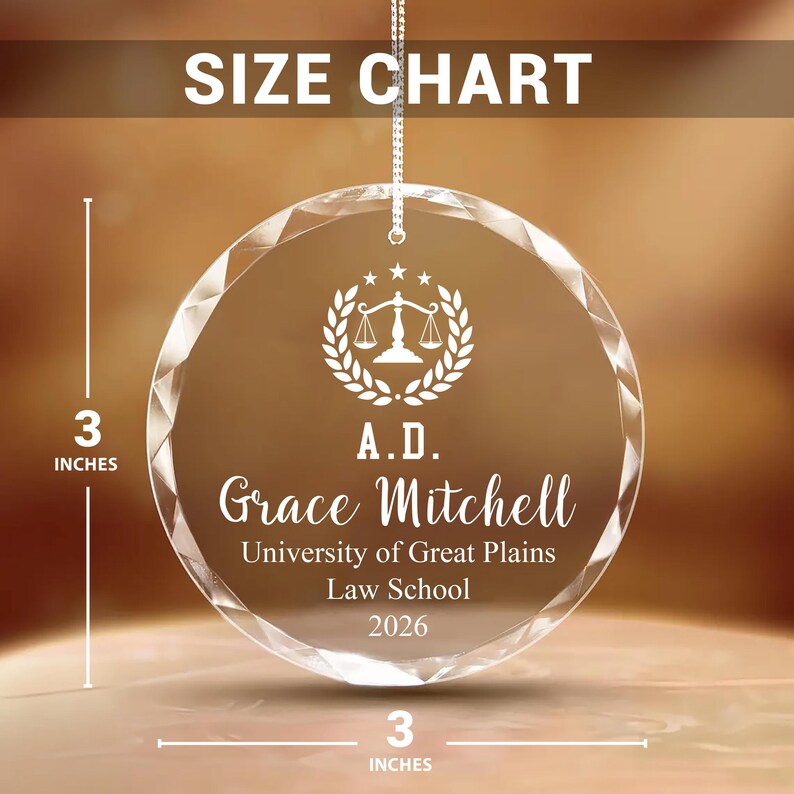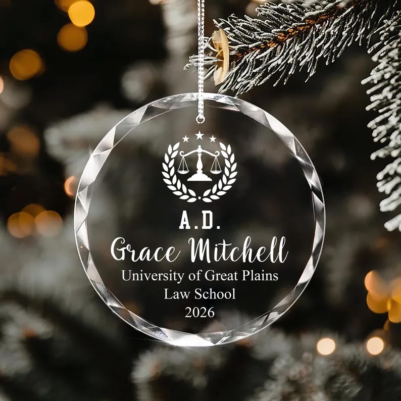 Law Degree Graduation Crystal Ornament, Personalized Lawyer Gift, Custom Class of 2026 Keepsake, Law School Grad Christmas Ornament