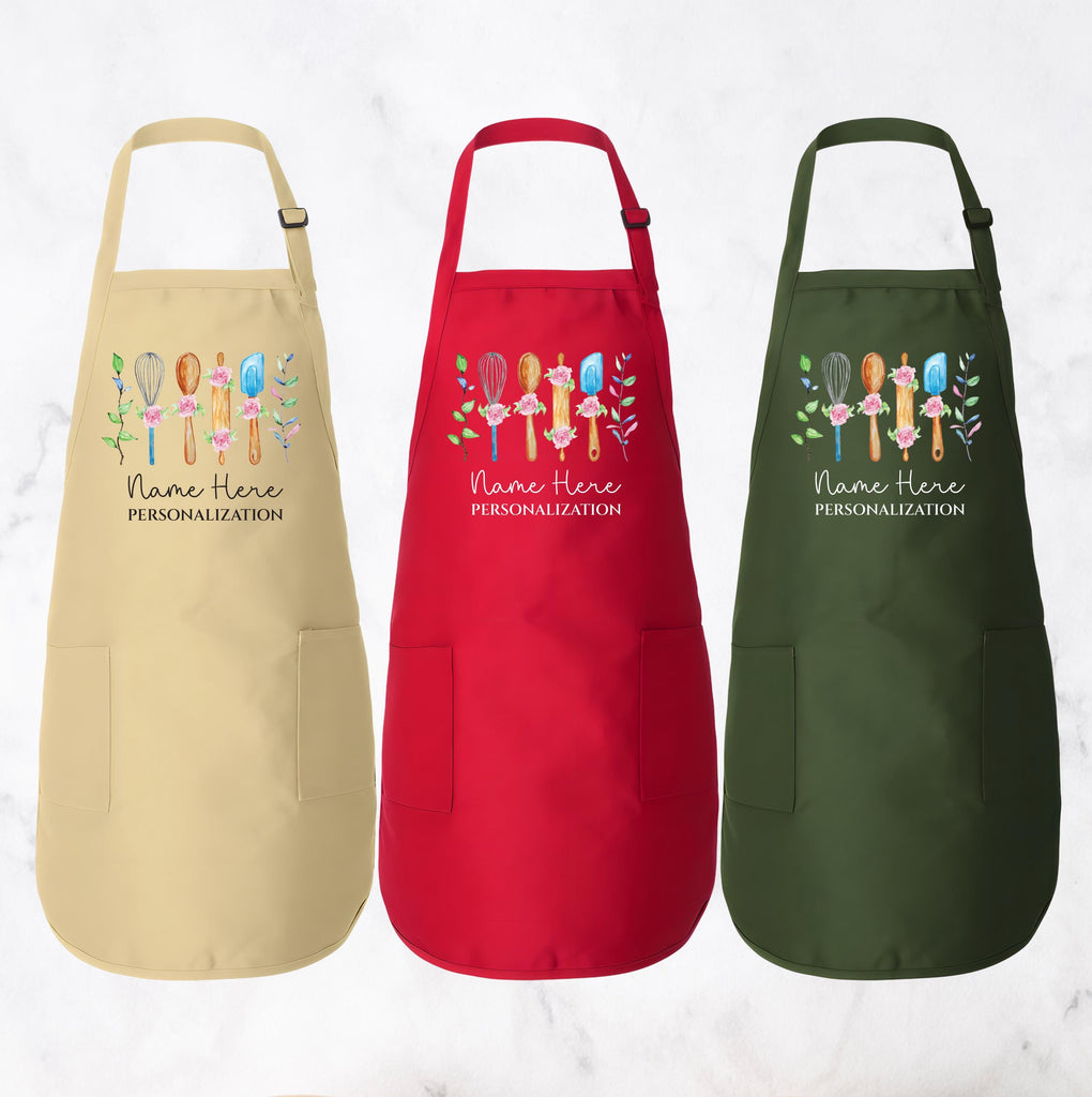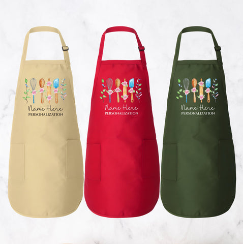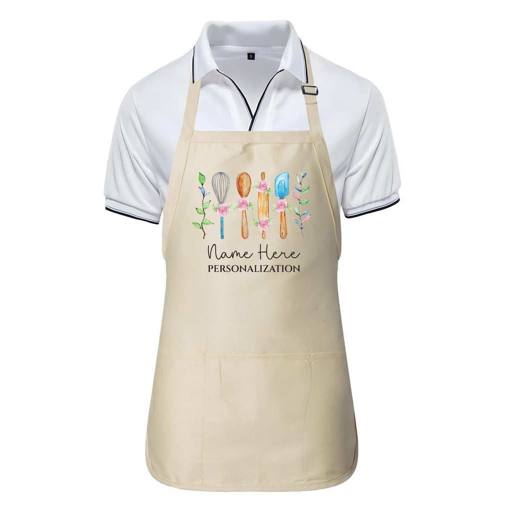 Custom Apron, Adjustable Neck Kitchen Apron, Full-Length Cooking Apron with Pockets, Custom Name Apron, Chef Name Personalized Gift Apron.
