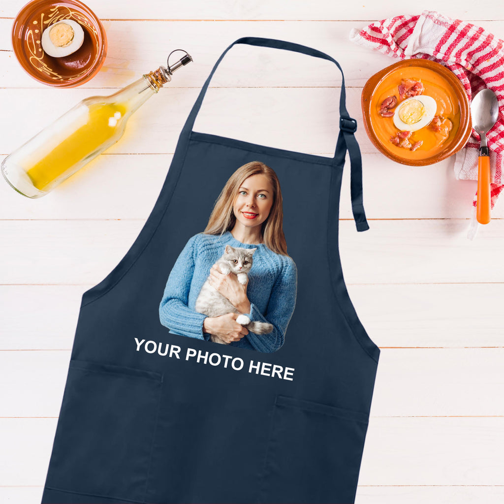 Custom Face Apron! This adjustable neck photo apron features a unique design that showcases your favorite face or image, making it a standout piece in your kitchen. Crafted from high-quality materials, this full-length cooking apron offers ample coverage and comes with pockets for convenience. Personalize it with a custom name for that extra special touch. Ideal as a Chef Face Personalized Gift Apron, it’s perfect for birthdays, holidays, or just because. Get ready to cook in style!
