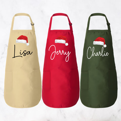 Custom Christmas Apron, Personalized Holiday Cooking Aprons, Matching Family Xmas Baking Gift, Red Green Festive Kitchen Apron with Name.