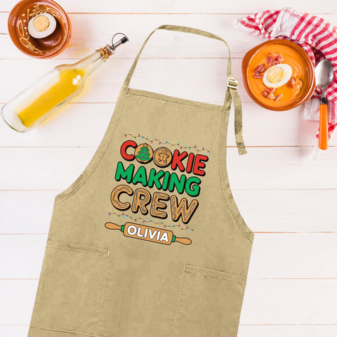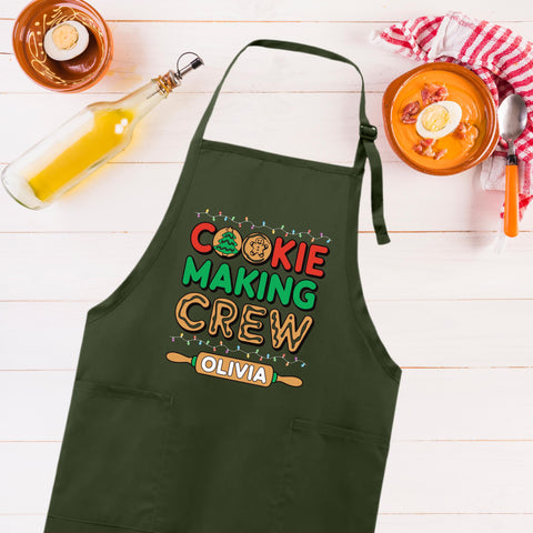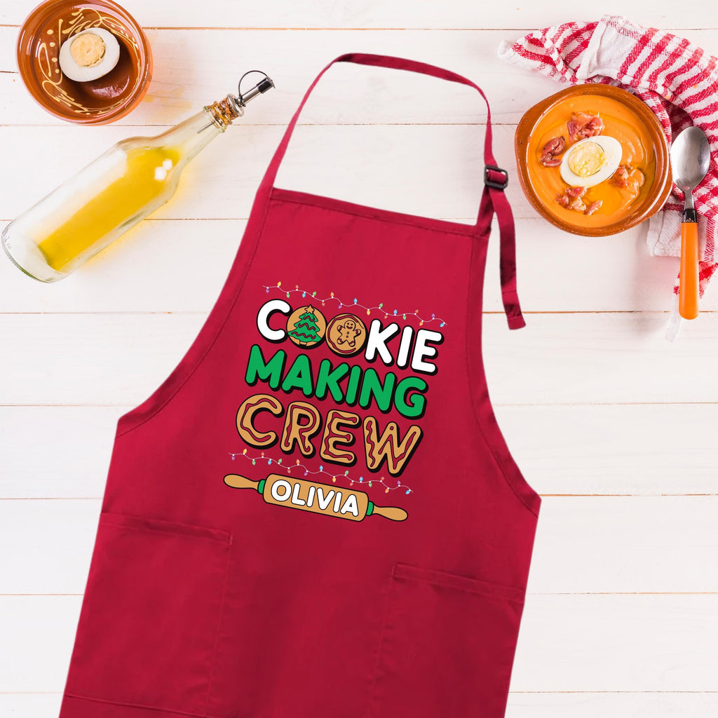 Get into the holiday spirit with our Personalized Cookie-Making Crew Christmas Apron! This full-length custom Christmas kitchen apron features an adjustable neck for the perfect fit and convenient pockets to hold all your baking essentials. Makes a thoughtful gift for the baking enthusiast in your life!