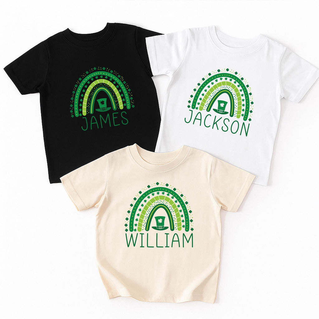 St. Patrick’s Day Baby Name Bodysuit, Personalized Rainbow Shamrock Shirt, St Patricks Day Rainbow Name Tee, Cute Irish Baby Shirt