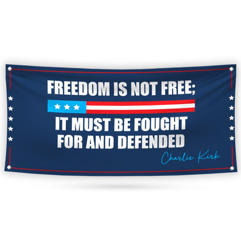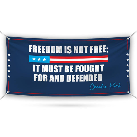 Charlie Kirk Banner Sign, Justice For Charlie Kirk Political Sign, A True Patriot Charlie Kirk Vinyl Banner with Metal Grommets. All Banners Are Printed Using Industry Best Latex Ink Technology and All Banners Include Metal Grommets in Each Corner for Easy Hanging. Larger Banners Receive Additional Grommets and Reinforced Hemming Along All Sides. We Suggest All Grommets Be Used During Installation To Prevent Damages To The Banner. Perfect for Indoor And Outdoor Use Justice For Charlie Kirk Banner Waterproof And UV Safe. MADE IN USA