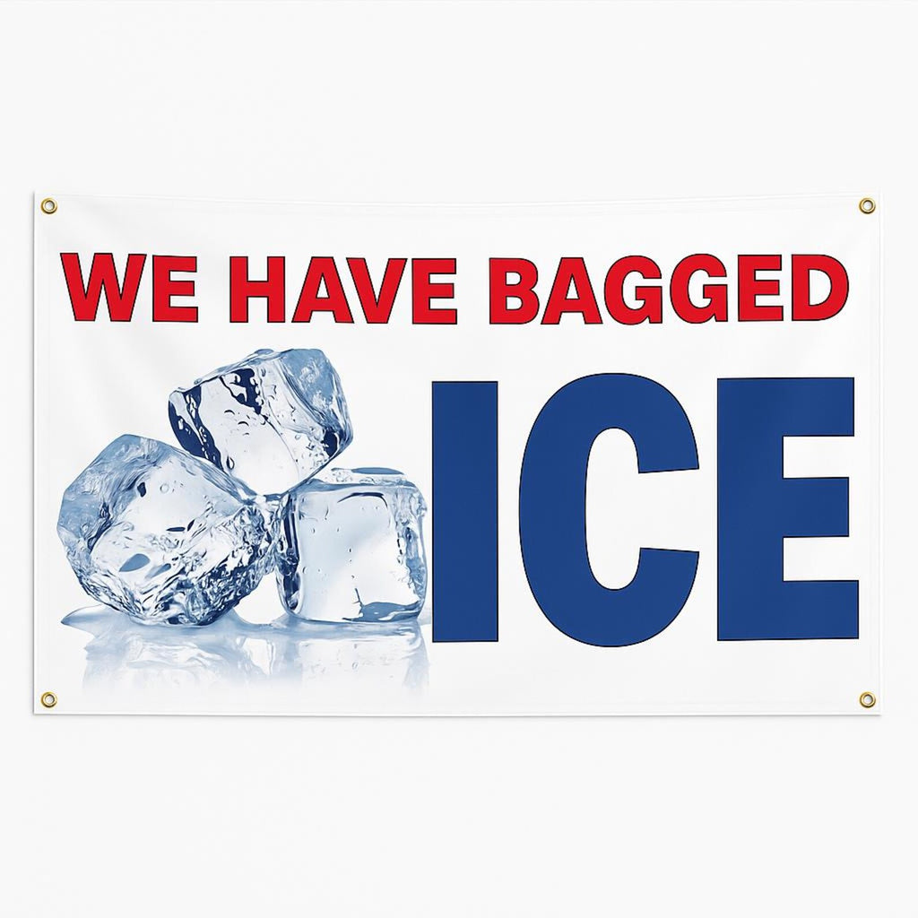 Material: We Have Bagged Ice Banner Sign Heavy Duty 13 Oz. Vinyl Banner Sign High Resolution Digitally Printed At 720 x 720.