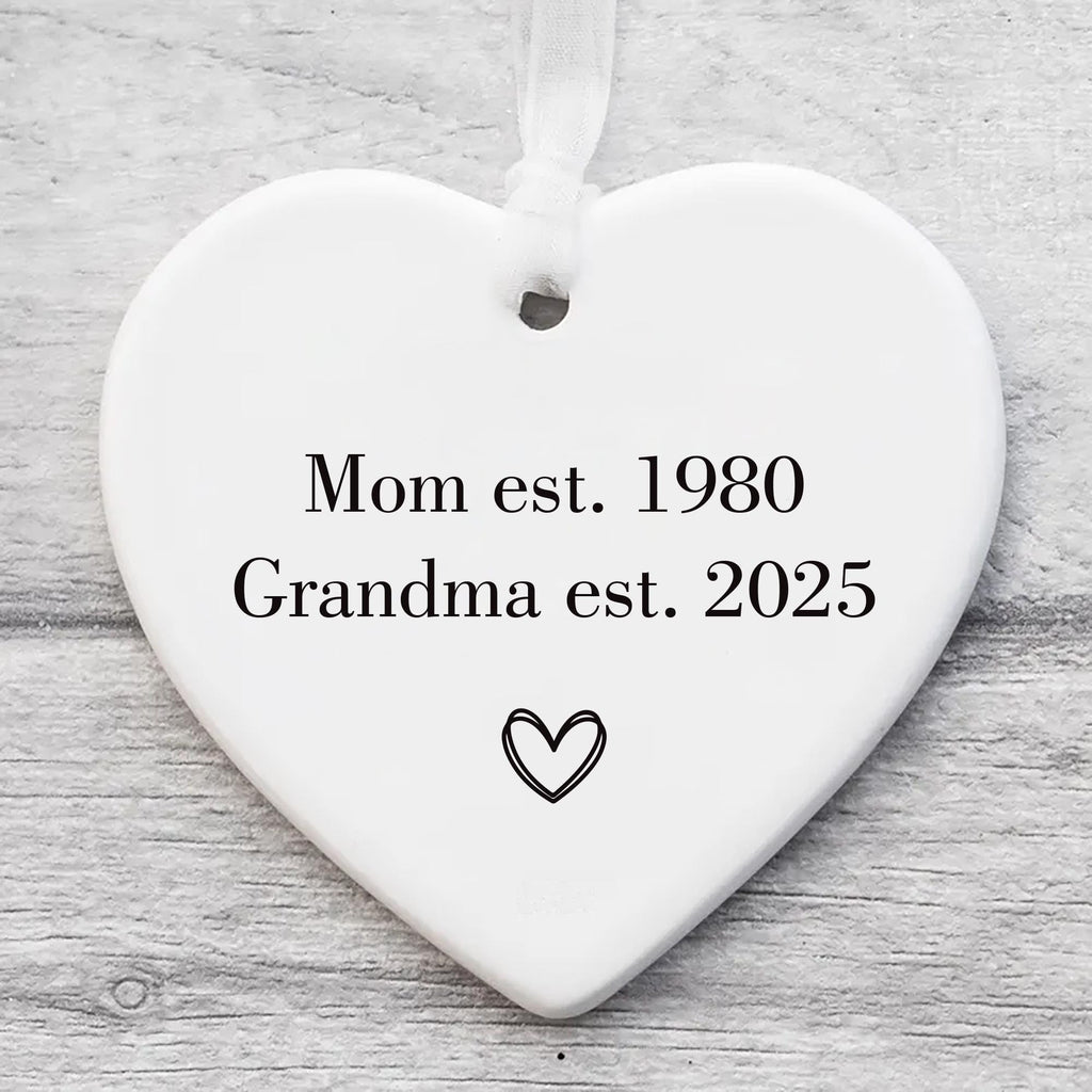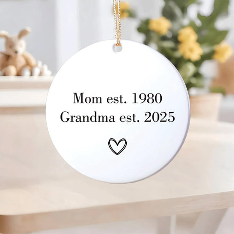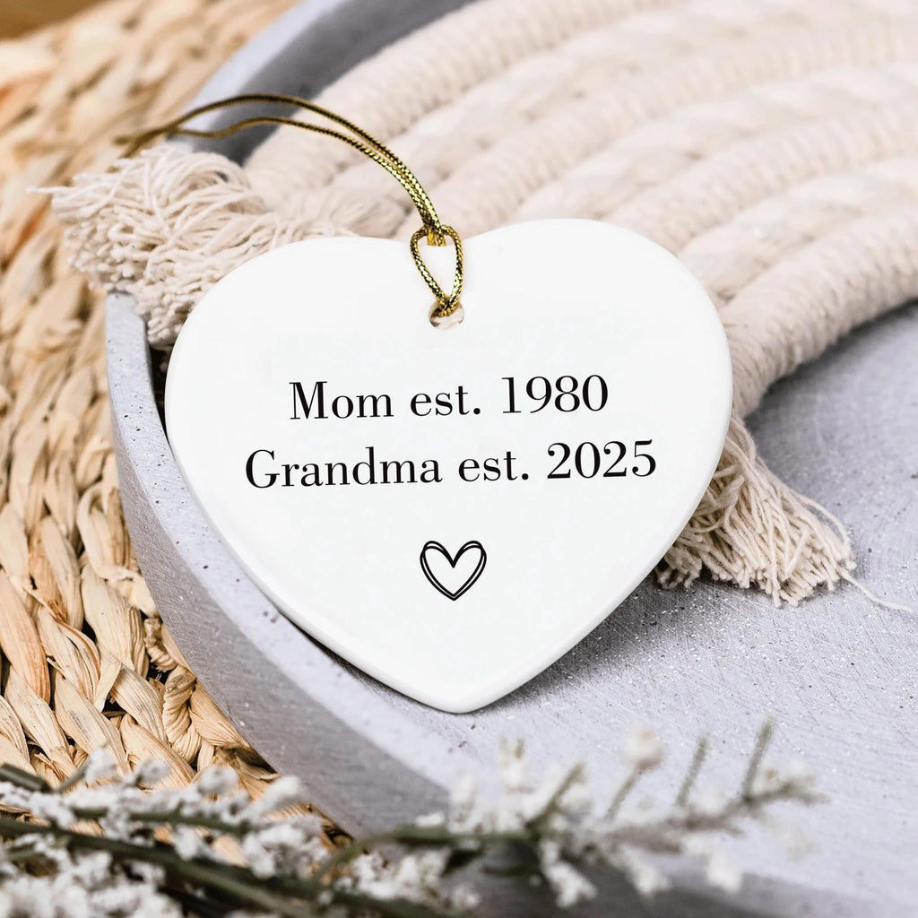 Surprise her with a special ceramic keepsake! A heartfelt gift to announce your pregnancy or celebrate her first Mother’s Day as a grandma. Celebrate her beautiful new chapter with this Personalized Grandma Ceramic Keepsake — a touching gift perfect for a pregnancy announcement, a first-time grandma surprise, or a Mother’s Day celebration. This ornament is designed to mark a truly unforgettable moment with elegance and love.