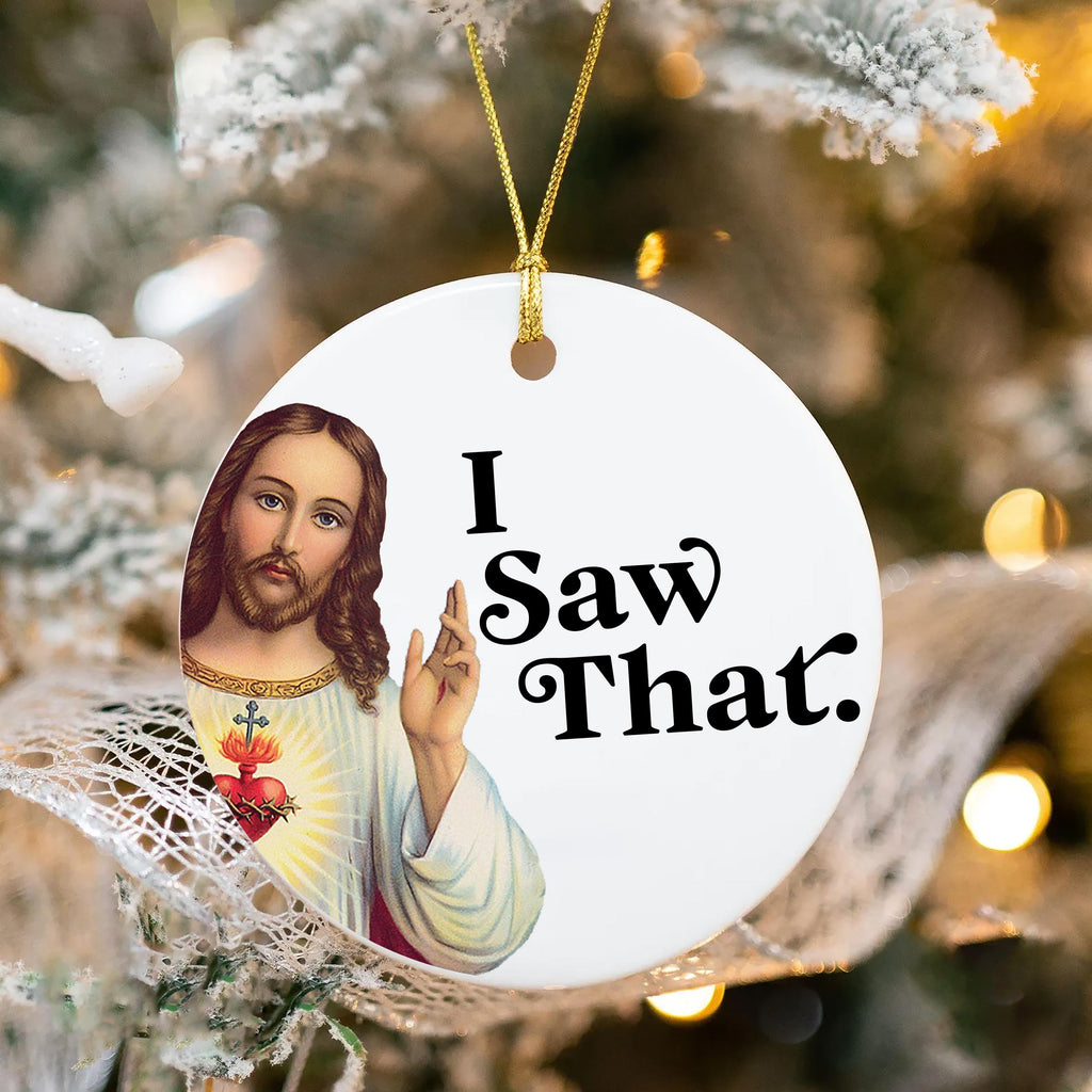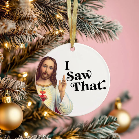 Add a little humor to your holiday decor with this I Saw That Funny Jesus Ornament 2025 — a perfect mix of faith and festive fun! This Christian Christmas ornament makes an excellent stocking stuffer or Secret Santa gift for friends, coworkers, or family members who enjoy a good laugh. Crafted from durable ceramic with a glossy finish, it’s a conversation starter for any Christmas tree.