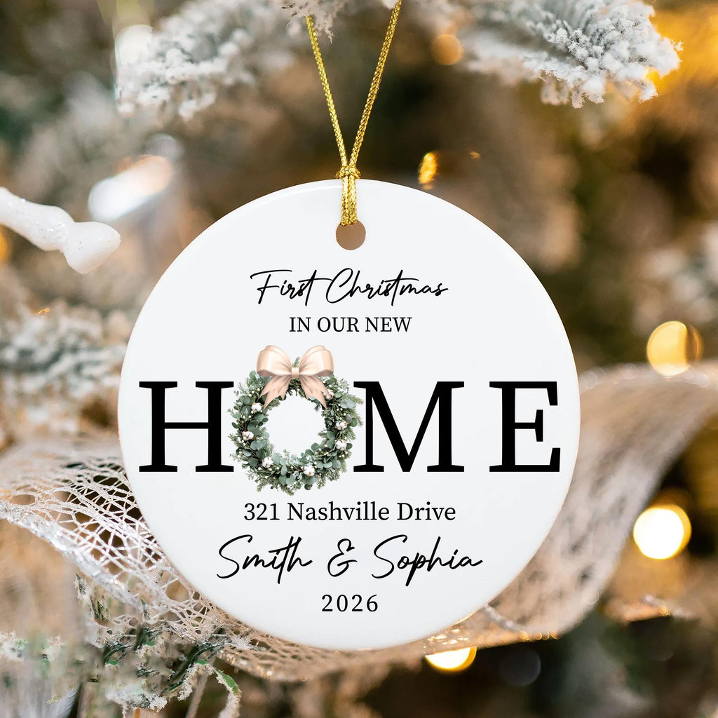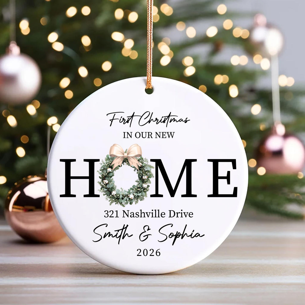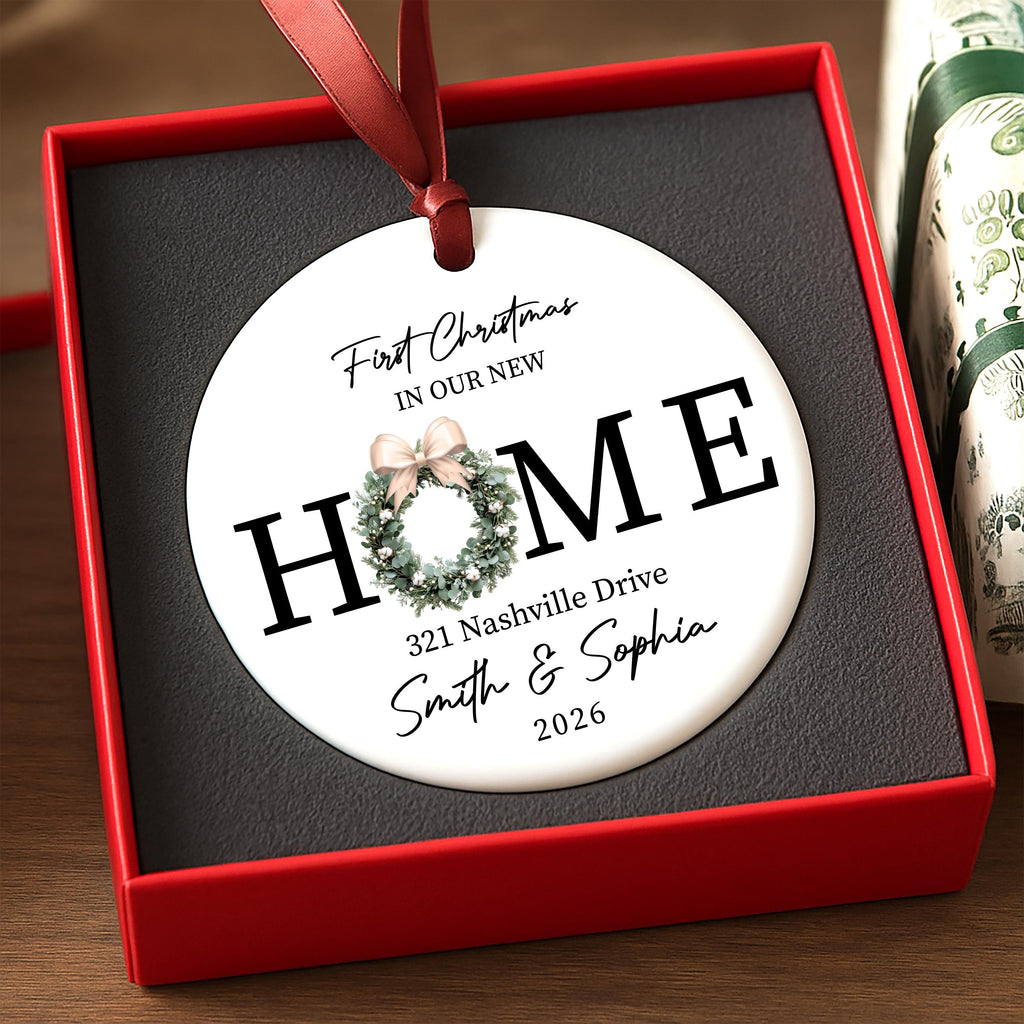 Celebrate your new beginning with this New Home Ornament, featuring a charming wreath design that captures the joy of your first holiday in a new house. Each ceramic ornament is printed using a permanent sublimation process, ensuring the design never fades or peels. It’s the perfect keepsake to commemorate your first Christmas in your new home or to give as a thoughtful closing gift.