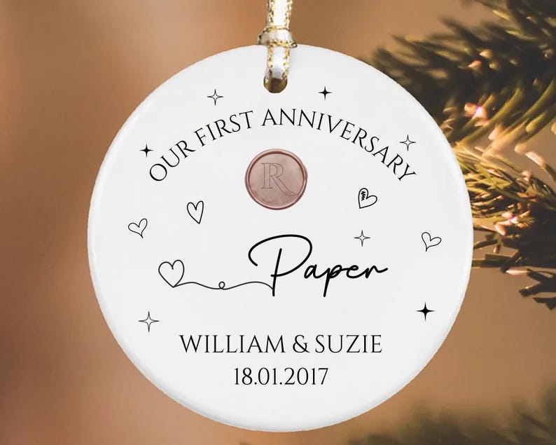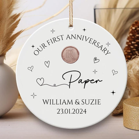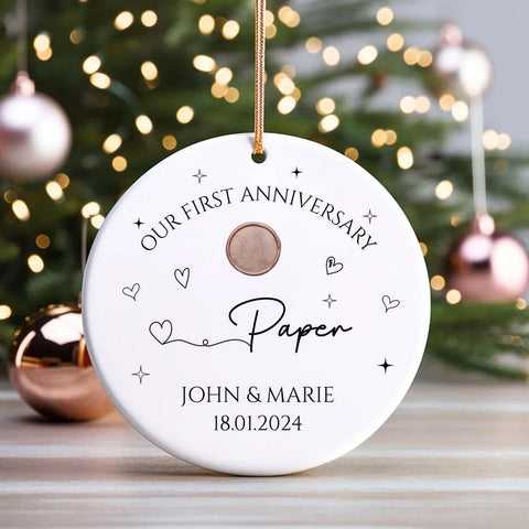 Crafted from premium ceramic, this ornament serves as a lasting token of love, perfect for displaying in your home or gifting to your spouse. Whether you're searching for a 1st-anniversary gift or a way to commemorate this special milestone, this keepsake is the perfect choice.