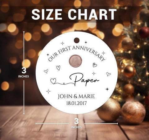 Celebrate your first year of love and commitment with our Personalized First Anniversary Ornament. This beautifully designed ceramic keepsake is a timeless way to honor your journey together, making it a thoughtful and meaningful gift for couples celebrating their first wedding anniversary.