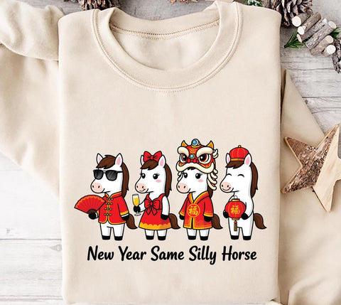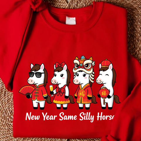 New Year Same Silly Horse Sweatshirt, Funny Lunar New Year Shirt, Cute Silly Horse Sweatshirt