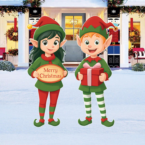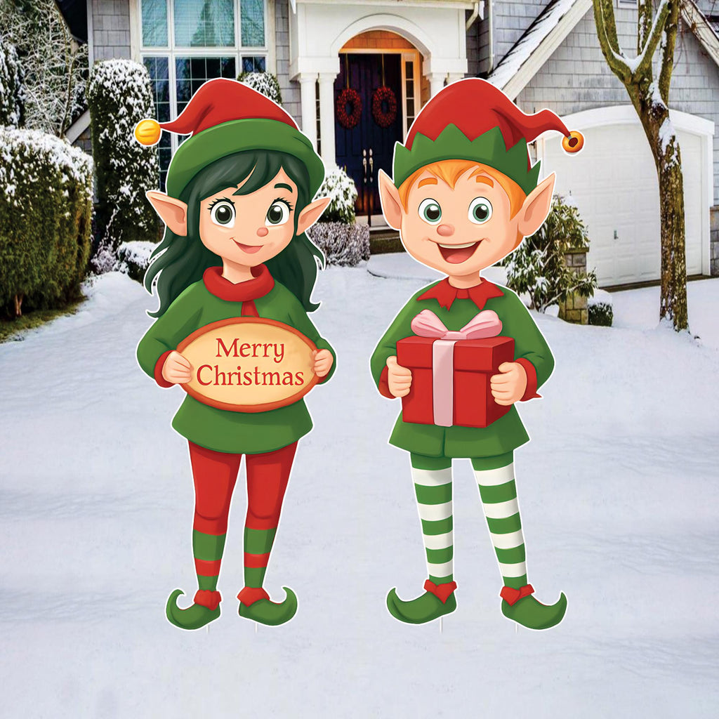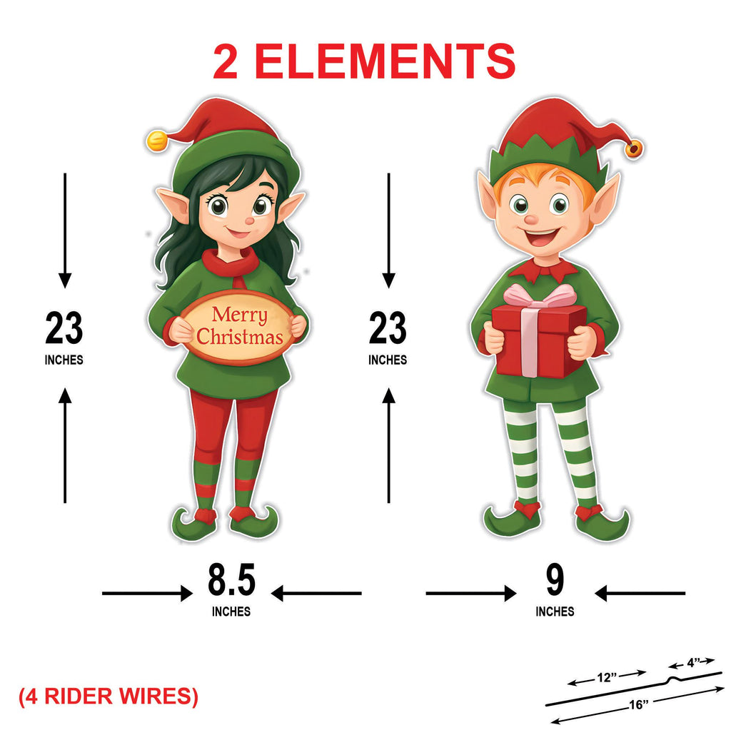 • Includes 2 cute elf yard signs (boy and girl)