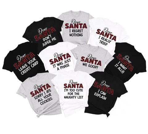 Make your family festivities extra fun with our Christmas Family “Dear Santa” Shirts! Perfect for Christmas morning, pajama photos, or matching family outfits, this cozy design pairs classic buffalo plaid with a playful holiday theme.