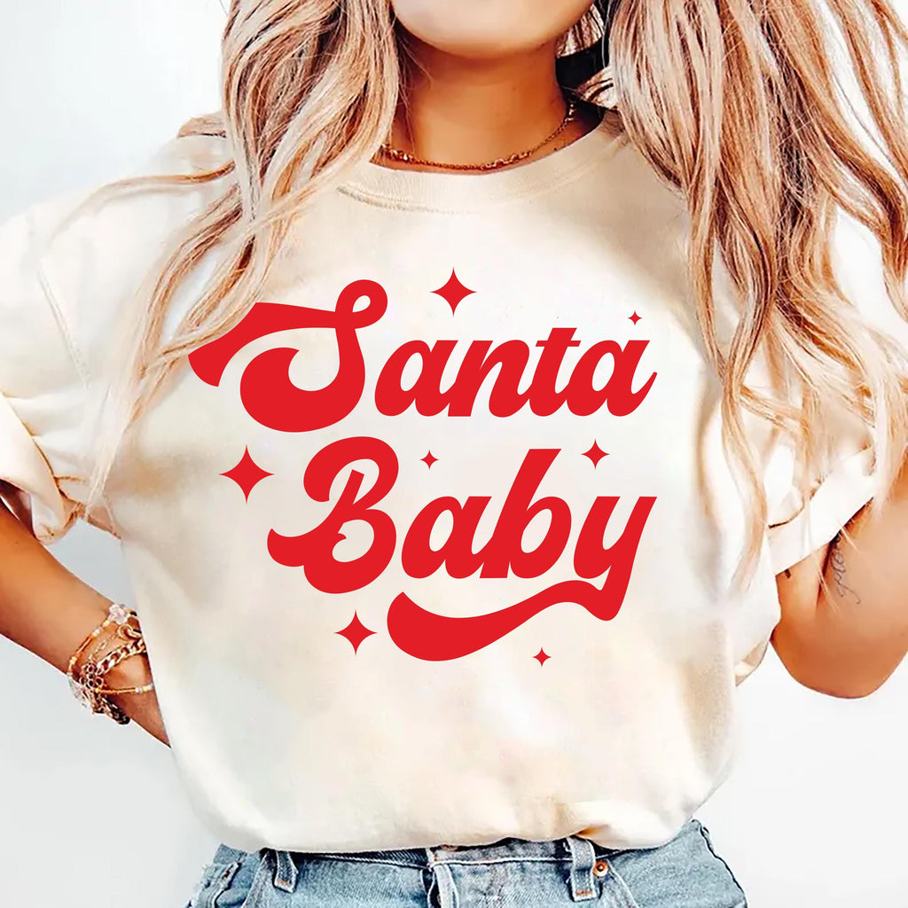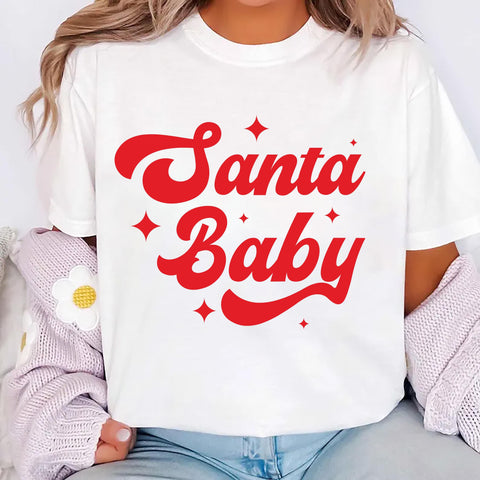 Add some sparkle to your holiday style with our Santa Baby Shirt! This preppy and cute Christmas tee features a trendy distressed Santa design β€” perfect for festive parties, cozy nights, and holiday cheer.