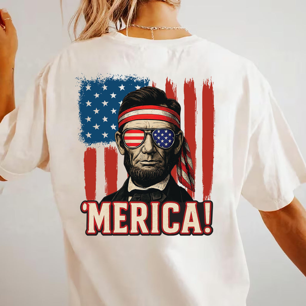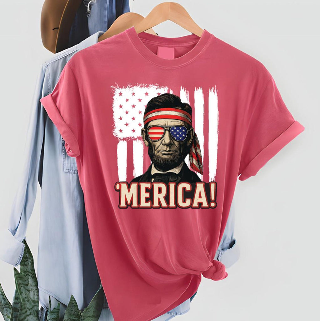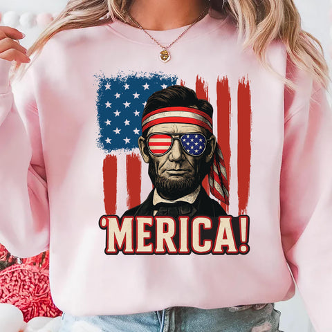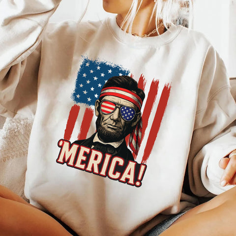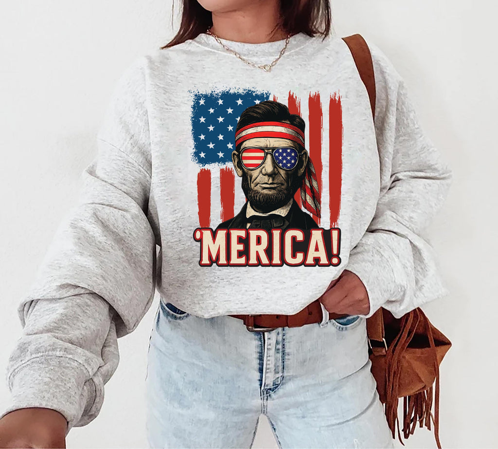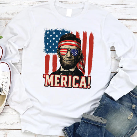 Abraham Lincoln Long Sleeve Shirt, 4th of July Patriotic Shirt, Merica American Flag Long Sleeve Tee, USA Independence Day Shirt, Patriotic Gift