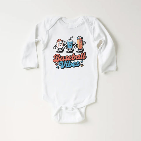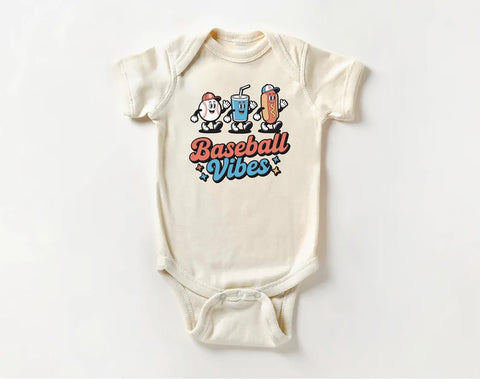 Bring on the home runs with this Baseball Vibes onesie, baby bodysuit, baby shirt, and toddler sweatshirt! Featuring a retro sports design for boys, it’s perfect for summer games, family baseball outings, photoshoots, or gifting your little slugger a sporty, game day look.