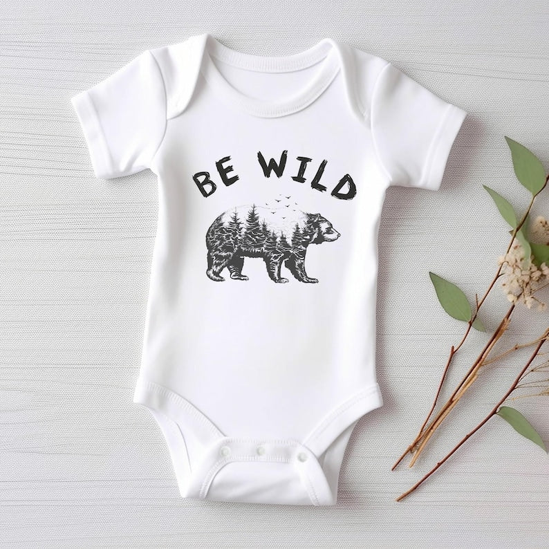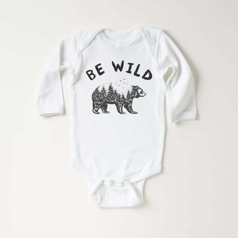 Let your little one embrace the wild with this adorable "Be Wild" baby bodysuit, baby shirt, and toddler sweatshirt! Featuring a cute adventure bear design, this crew neck outfit is perfect for outdoor-loving families, camping trips, and baby shower gifts. Made with soft, high-quality fabric, it keeps your baby cozy and stylish on every adventure!
