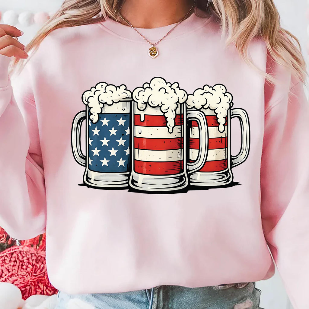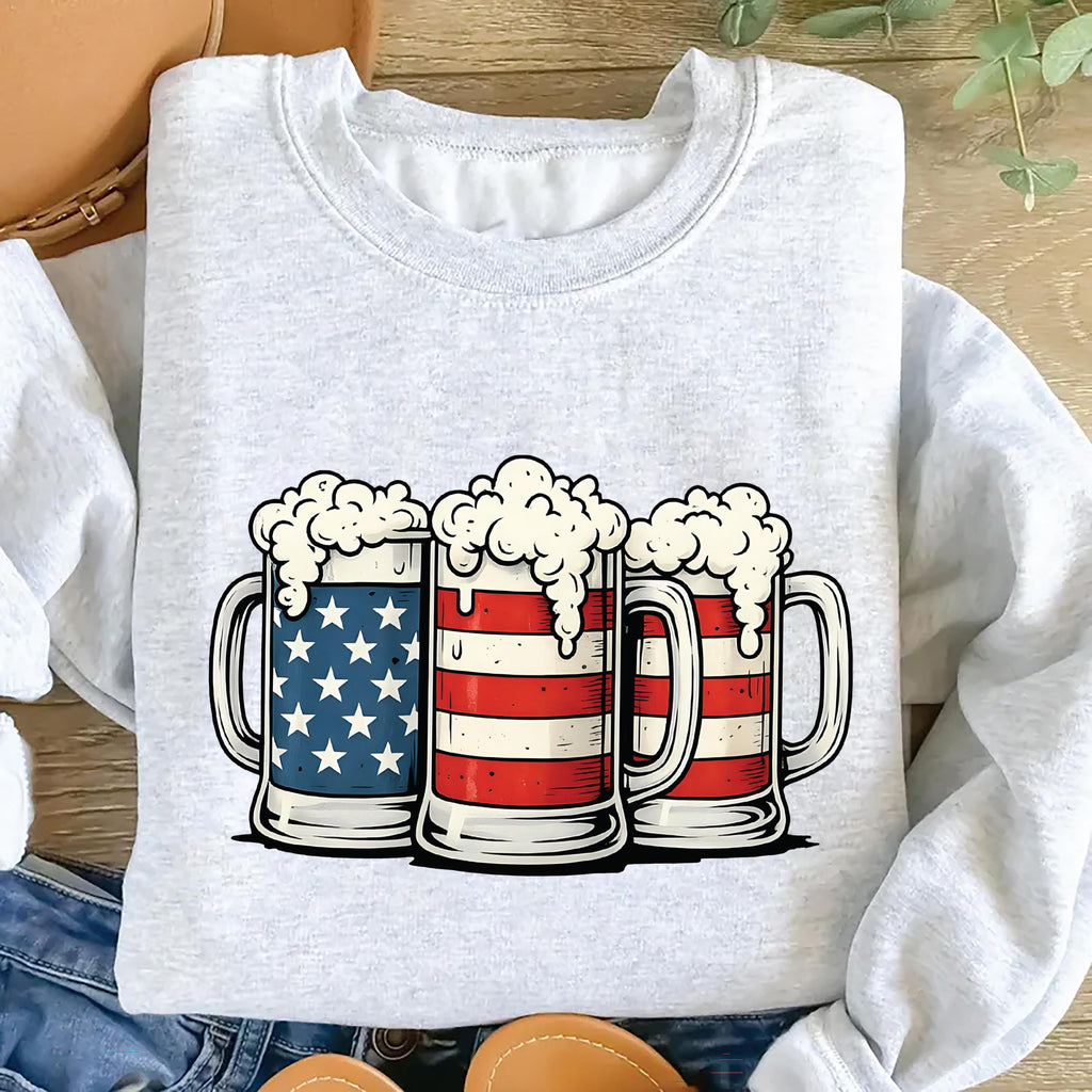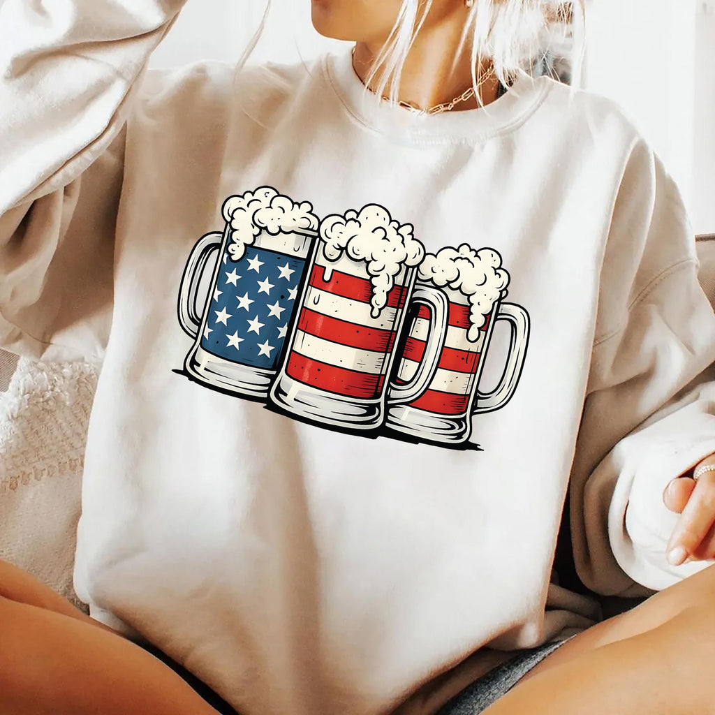 Beer American Flag Sweatshirt, 4th of July Drinking Sweatshirt, Merica Beer Lover Sweatshirt, Patriotic USA Party Sweatshirt, Independence Day Gift