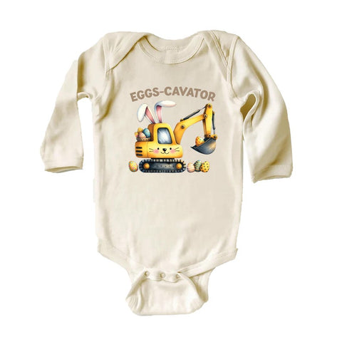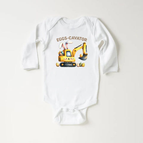 This funny and adorable outfit is perfect for Easter celebrations, family photos, or highlighting your little one’s "Eggs-Cavator" charm. Celebrate laughter, joy, and the spirit of Easter with this delightful keepsake, designed to bring smiles and festive cheer to everyone around! 🐣🚜✨