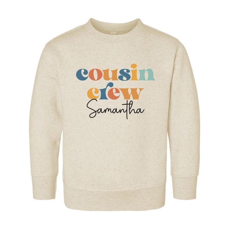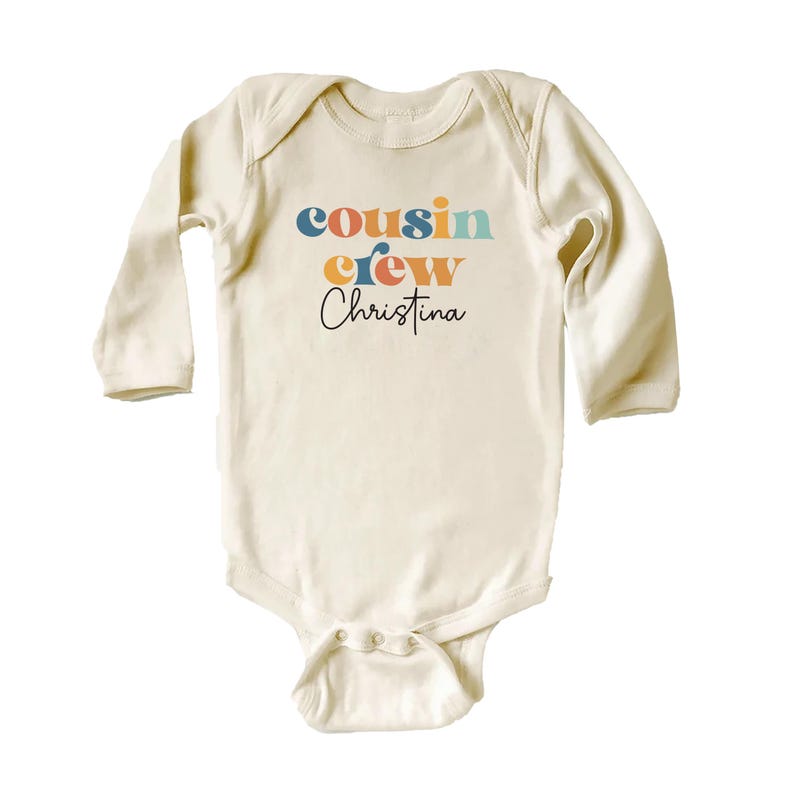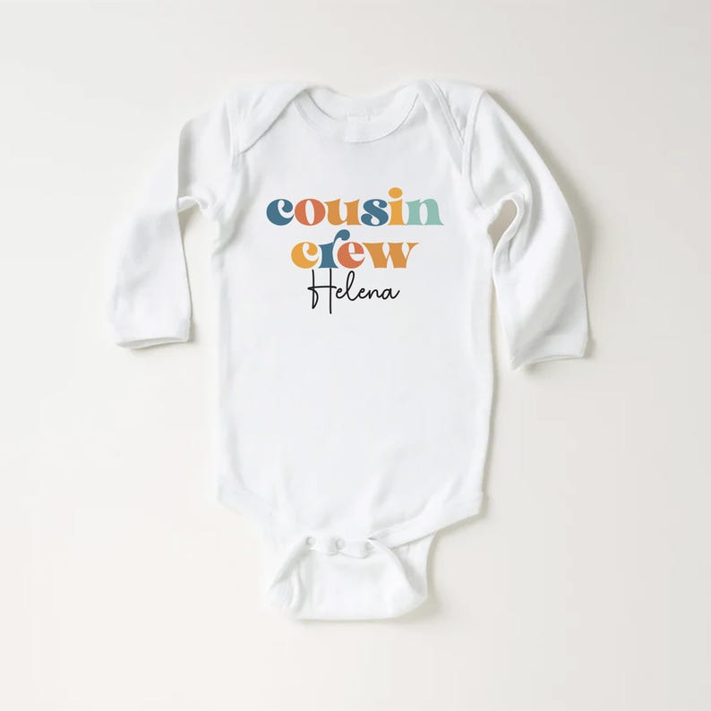 Celebrate family with this adorable "Cousin Crew" baby bodysuit, baby shirt, and toddler sweatshirt! Featuring a personalized name option, this cute cousin crew outfit is perfect for matching family gatherings, birthdays, and fun cousin photoshoots. A must-have for little best friends!
