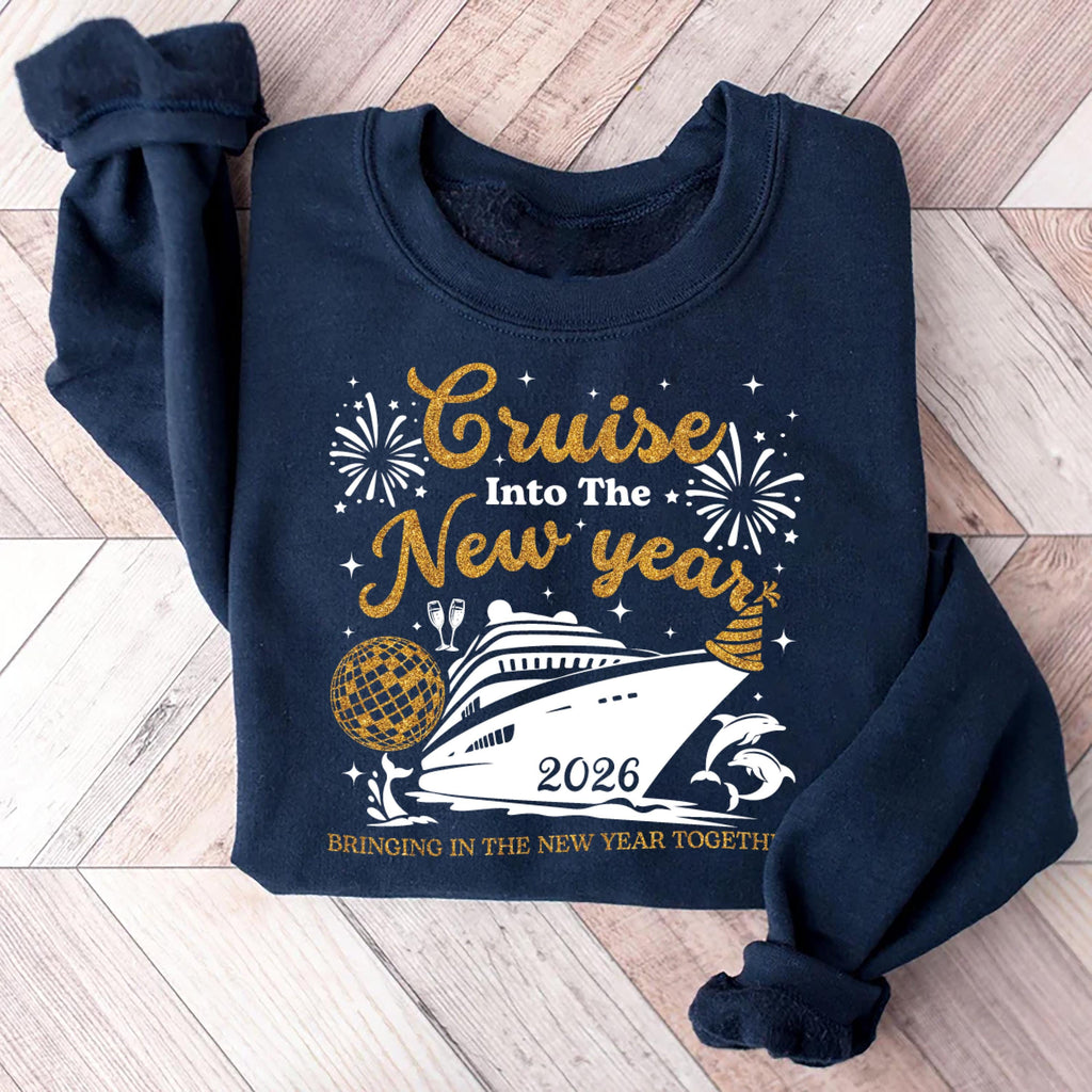 Cruise Into New Year Sweatshirt, Bringing New Year Together Tee, New Year 2026 Family Sweatshirt