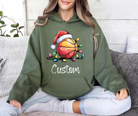 Custom Christmas Basketball Hoodie, Santa Sports Team Shirt, Personalized Basketball Hoodie