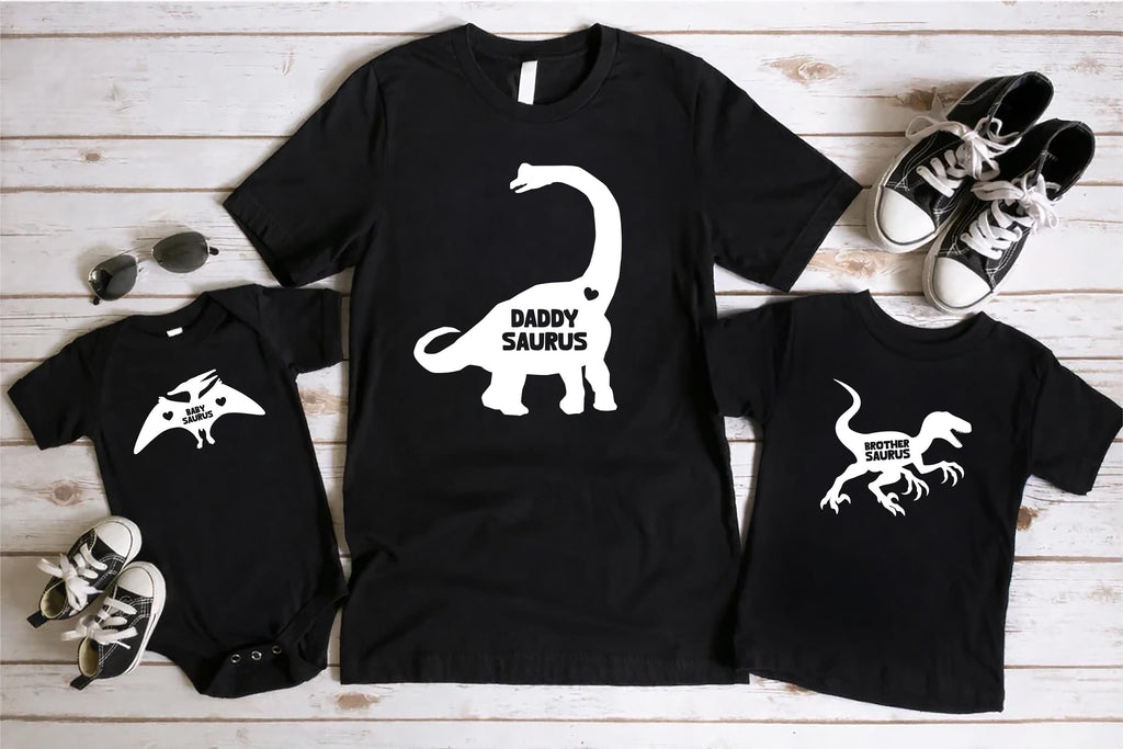 Create the cutest family matching moment with these Custom Dinosaur Saurus shirts — perfect for parents, kids, and extended family.