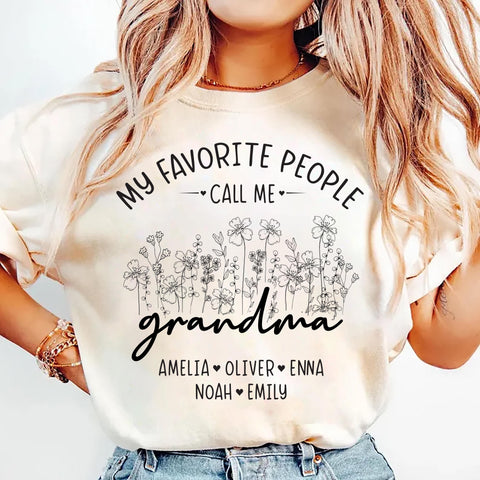 Celebrate the love of family with this Custom Grandma Shirt โ€” personalized with kidsโ€™ names and a beautiful wildflower design.
