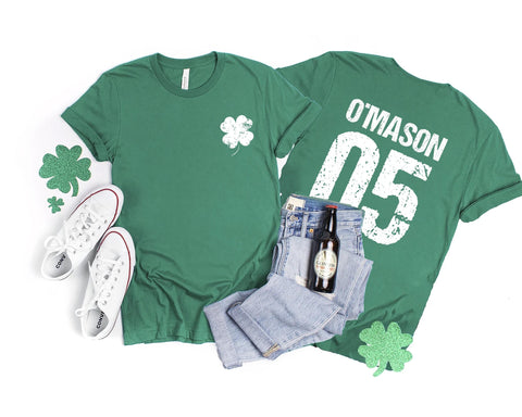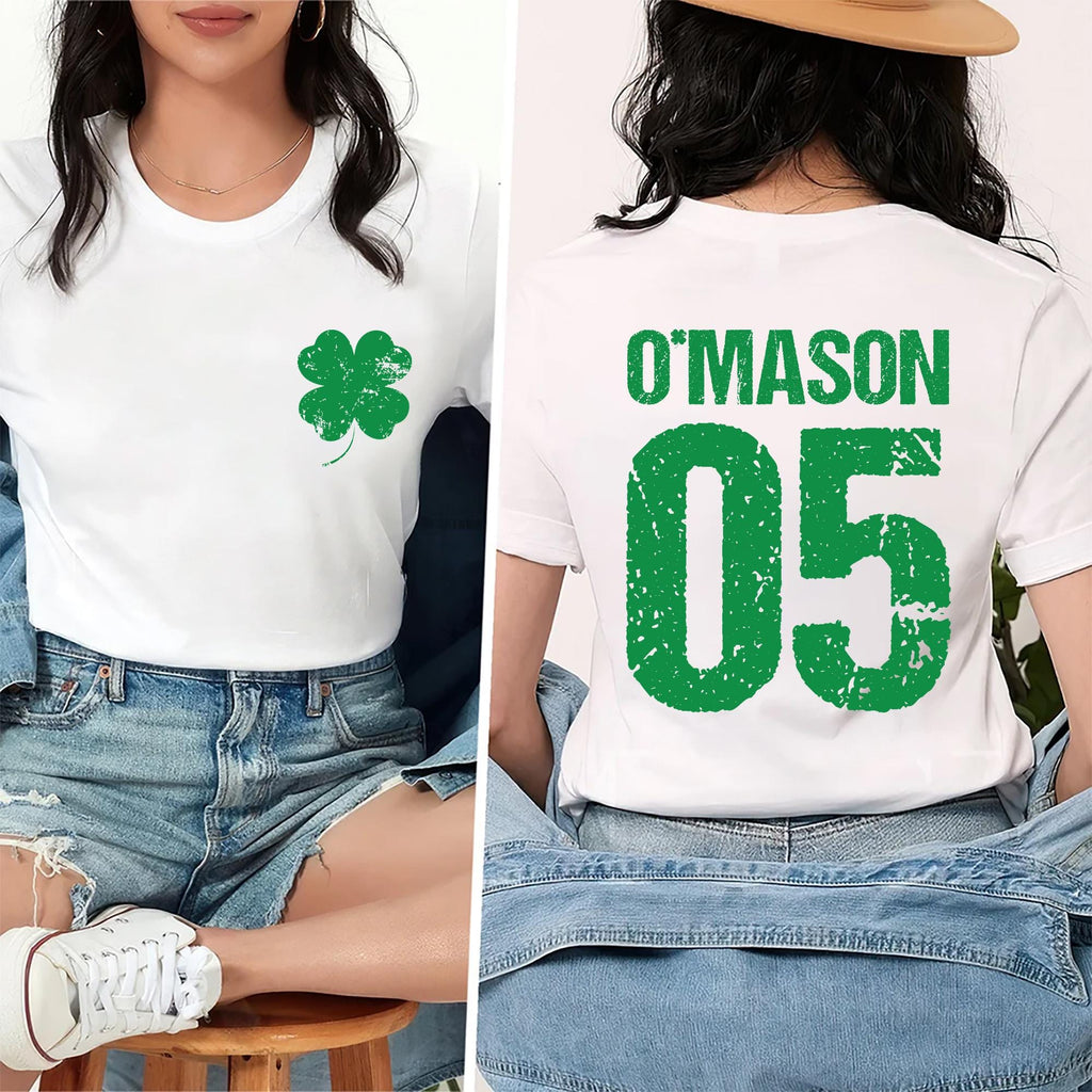 Custom Irish Shirt, Personalized Name and Jersey Number Shirt, Shamrock St Patrick’s Day Tee, Front Back