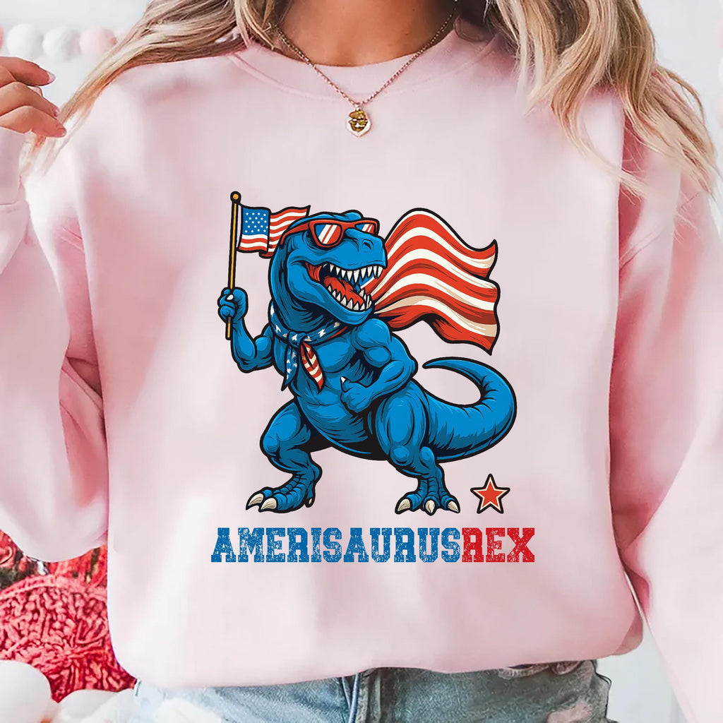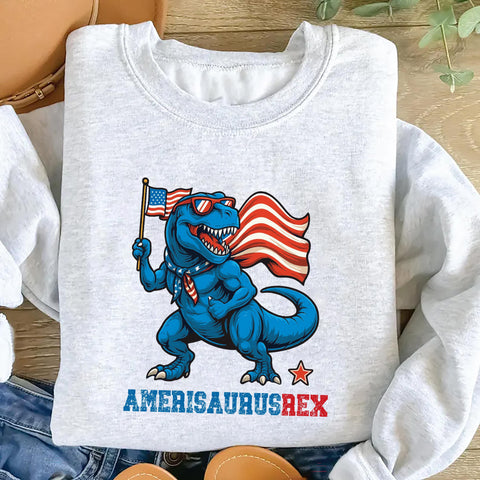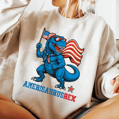 Dinosaur 4th of July Sweatshirt, Amerisaurus T-Rex Sweatshirt, American Flag USA Sweatshirt, Patriotic Dino Sweatshirt, Funny Independence Gift