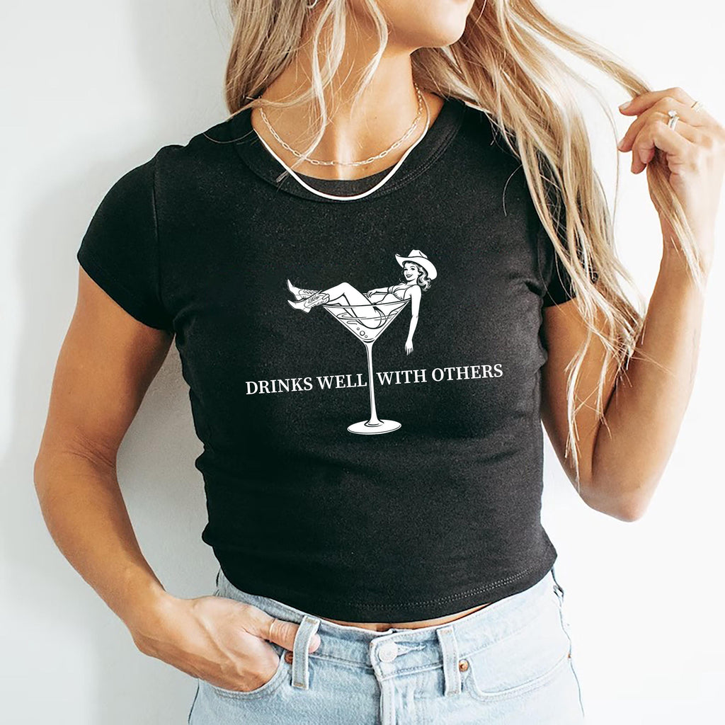 Introducing the "Drinks Well With Others Crop Top Shirt," the perfect blend of humor and style for any festive occasion. This funny Irish shirt is an ideal choice for St. Patrick's Day celebrations, whether you're enjoying a parade or a cozy gathering with friends. Made with soft fabric, this Irish girl baby tee provides the comfort you need while showcasing your playful spirit. The unique shamrock crop top design makes it a trendy option for Y2K fashion lovers looking to stand out. Celebrate your Irish heritage and grab attention in this leprechaun baby tee or for a casual day out. Get ready to make heads turn with the "Drinks Well With Others" motto, and take your festive wardrobe to the next level with this must-have funny drinking shirt!