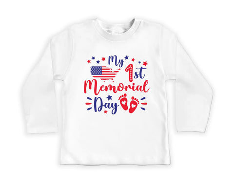 Honor your baby's First Memorial Day with this adorable patriotic baby bodysuit, baby shirt, and toddler sweatshirt! Featuring a red, white, and blue design, this outfit is perfect for family gatherings, military tributes, and capturing your little one's first American holiday memories.