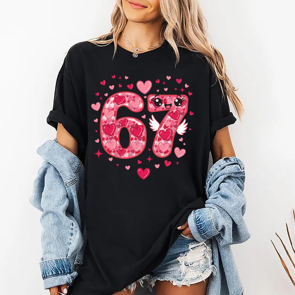 Funny Valentine 67 Shirt, Six Seven Heart Number Shirt, Viral 67 Meme Tee
