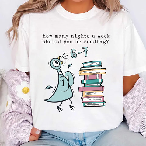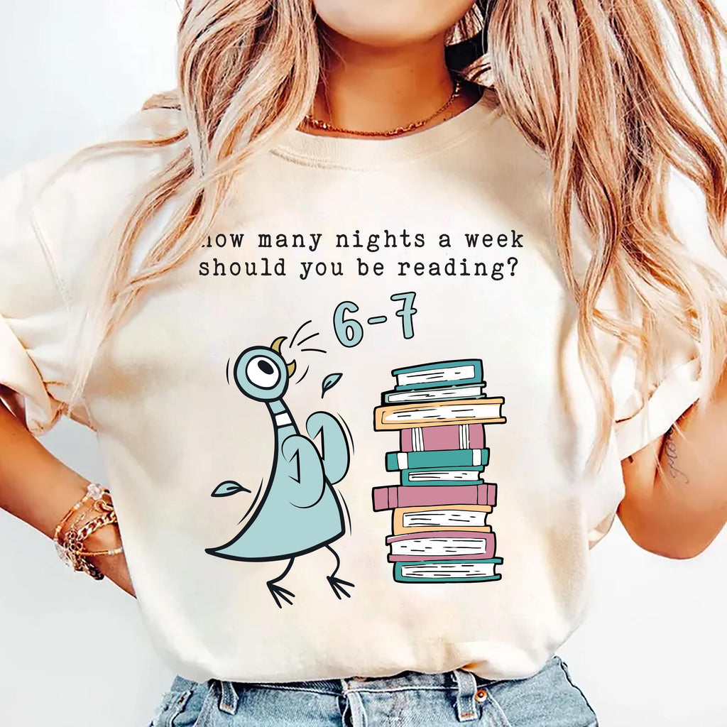 How Many Nights a Week Should You Be Reading 6-7 Shirt, Pigeon Elephant Piggie Books Shirt, Funny Teacher 67 Tee