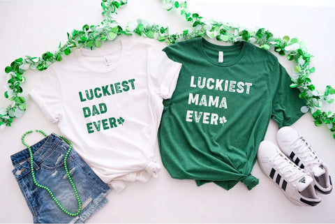 Celebrate Irish luck in style with this “Luckiest Mama Ever” and “Luckiest Dad” matching design — perfect for St. Patrick’s Day and family outfits.