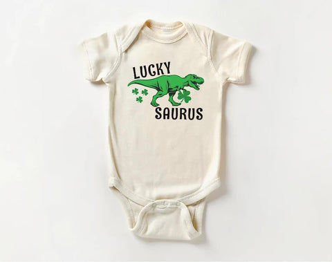 Lucky Saurus St. Patrick's Day Baby Bodysuit, Baby Shirt, Toddler Sweatshirt - Shamrock Dinosaur Lucky Kids Outfit, Saint Patrick’s Day Gift