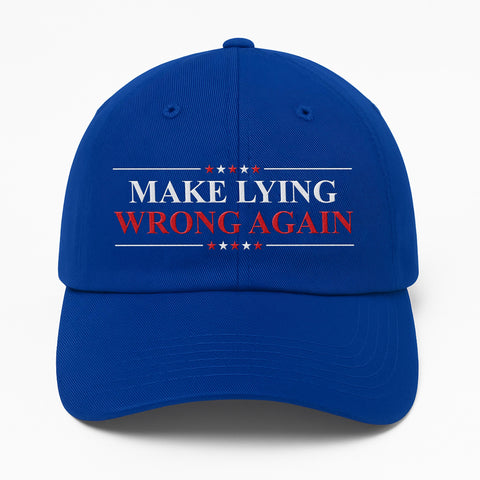 Show your stance with our "Make Lying Wrong Again" embroidered hat – a bold symbol of democracy and resistance. Whether you're marching, gifting, or making a statement, this hat says it all with clean, high-quality embroidery. Ideal for protest events, political rallies, or everyday wear with a purpose.