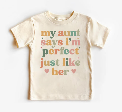 Celebrate the sweetest bond with this My Aunt Says I'm Perfect Just Like Her onesie, baby bodysuit, baby shirt, and toddler sweatshirt! Featuring a boho rainbow design with playful charm, it’s perfect for baby showers, auntie visits, photo shoots, or gifting your favorite little bestie from Auntie herself.