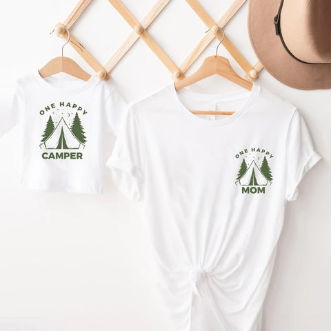 Celebrate your little one with this β€œOne Happy Camper” 1st Birthday shirt β€” perfect for family matching outfits, camping trips, and outdoor memories.