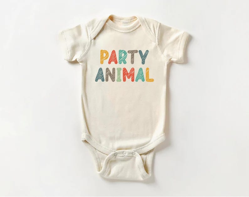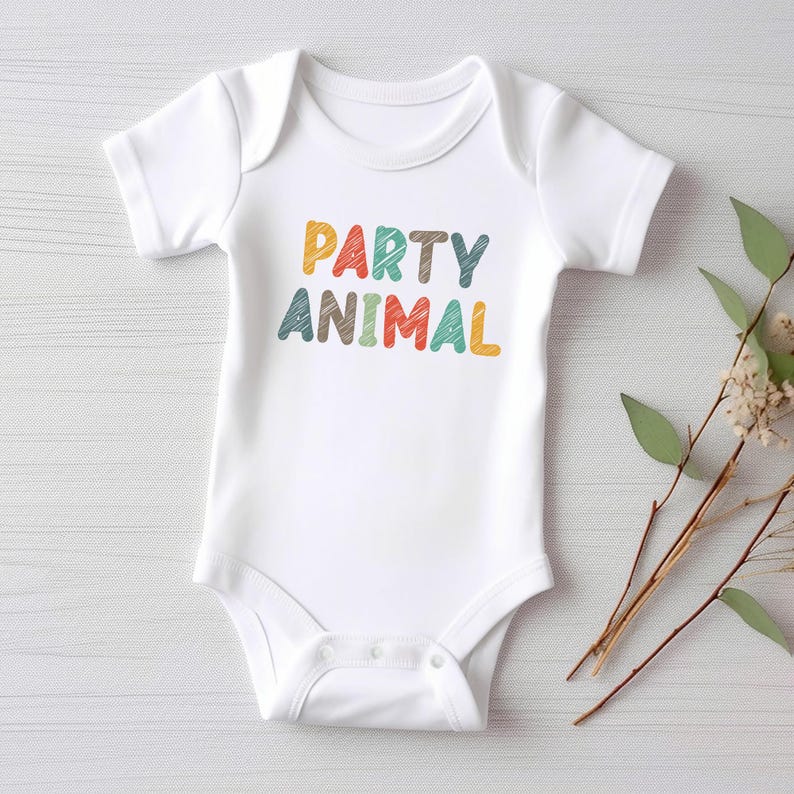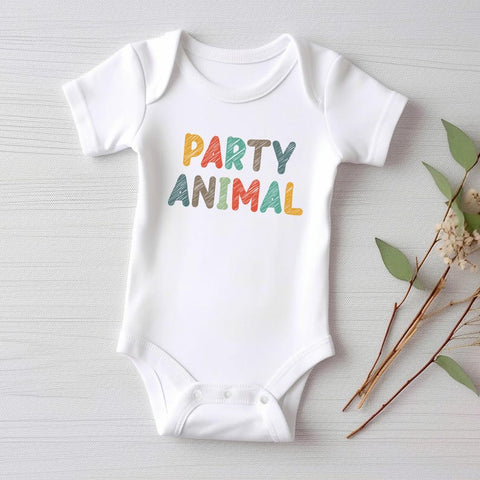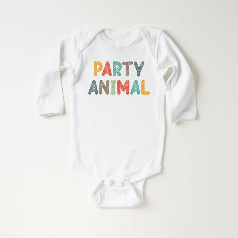 Let your little one celebrate in style with this adorable "Party Animal" baby bodysuit, baby shirt, and toddler sweatshirt! Designed for fun animal-themed birthdays, this cute birthday outfit is perfect for wild one parties, baby showers, and celebration photoshoots.