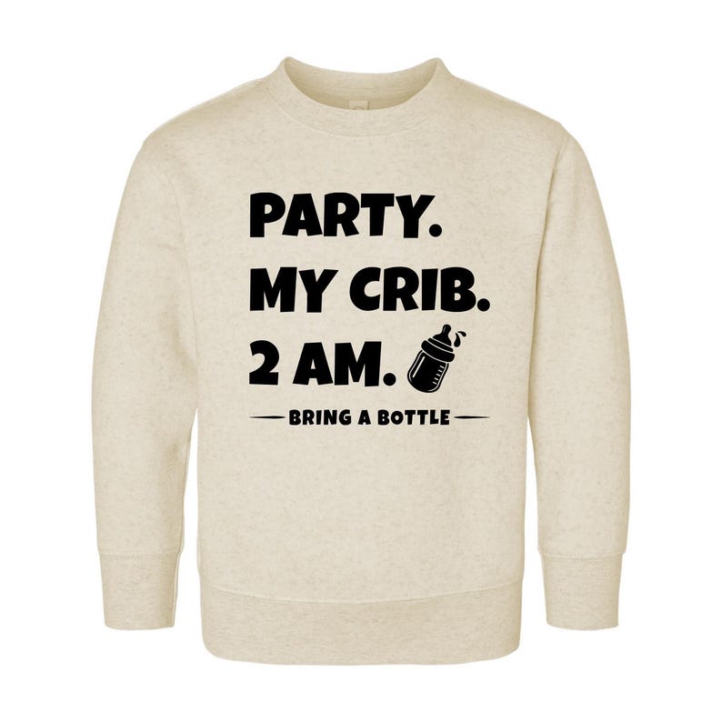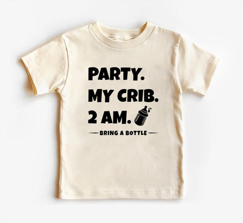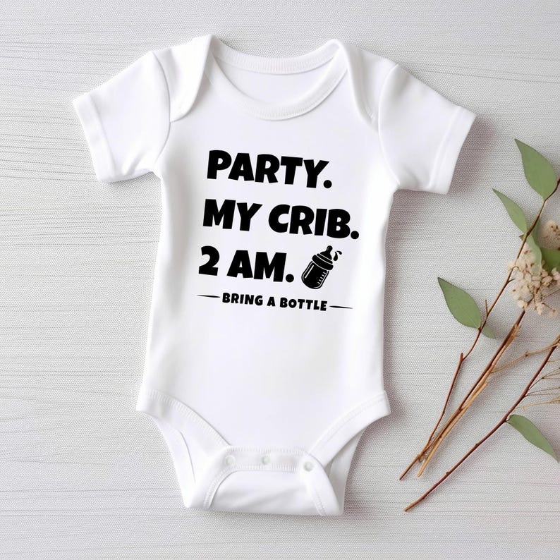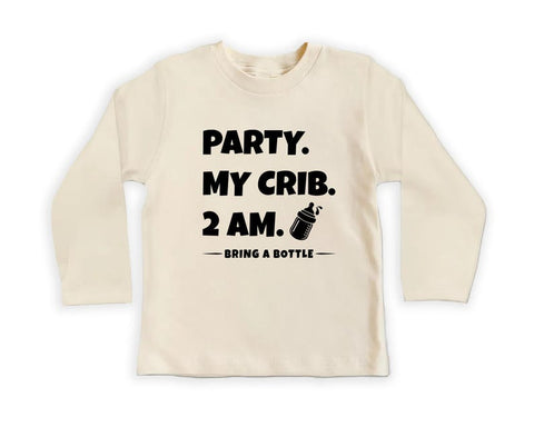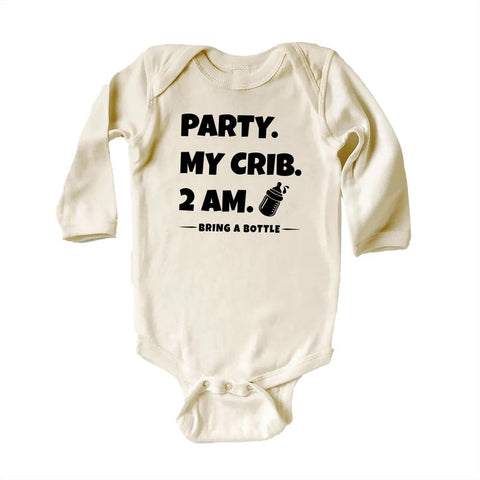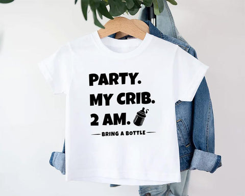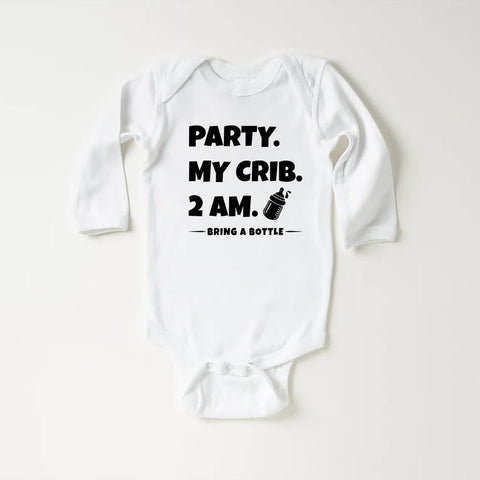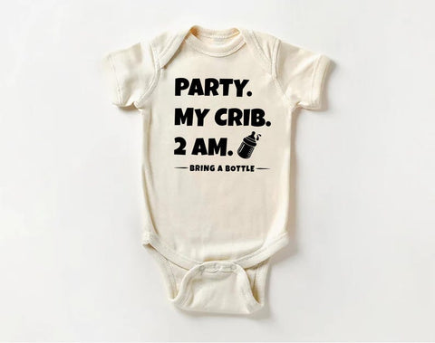 Get the party started with this adorable "Party at My Crib" baby bodysuit, baby shirt, and toddler sweatshirt! Designed for fun-loving babies and parents, this hilarious outfit is perfect for baby showers, newborn announcements, and matching with drinking buddies.