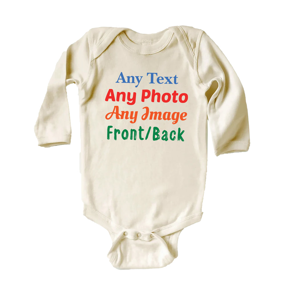 Turn memories into wearable moments with this personalized baby bodysuit, baby shirt, and toddler sweatshirt! Upload a custom children photo, add any text, and create a unique design made just for your little one. Perfect for gifts, birthdays, or keepsake outfits for both girls and boys.