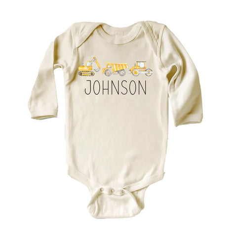 Personalized Construction Baby Bodysuit, Truck Baby Shirt, Toddler Sweatshirt - Custom Equipment Outfit, Dump Truck Boys Shirt, Kids Gift