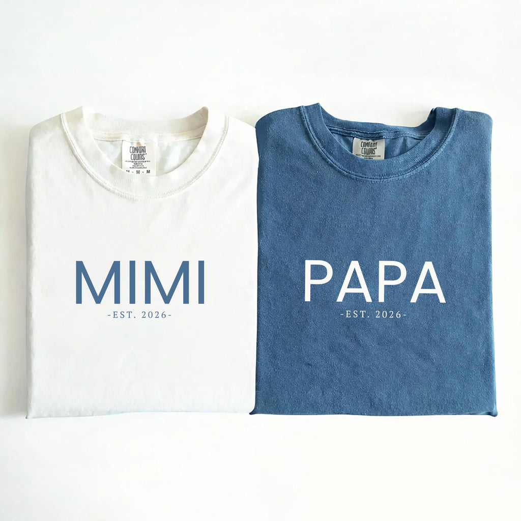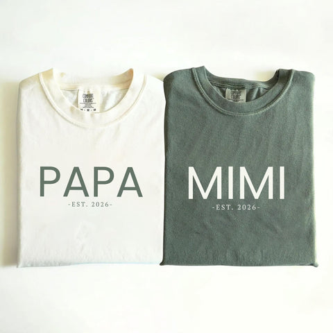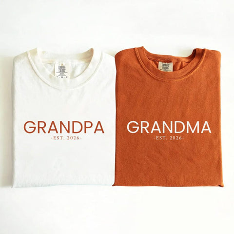 Share the sweetest news with these Personalized Grandma & Grandpa Est. Year shirts โ€” a heartfelt way to announce first-time grandparents.