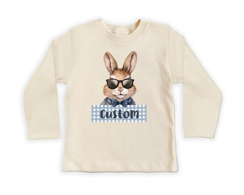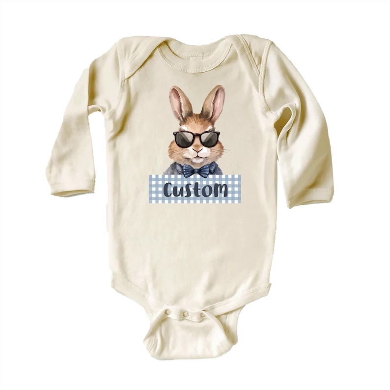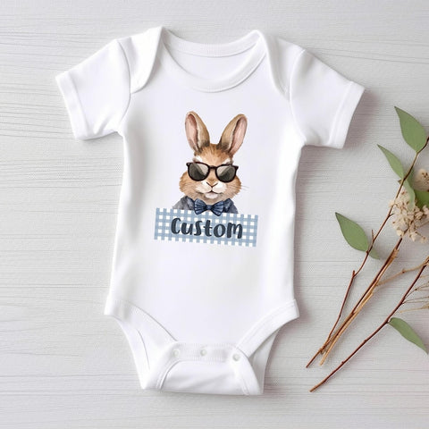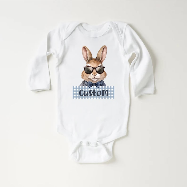 Personalized Name Bunny Baby Bodysuit, Baby Shirt, Toddler Sweatshirt - Custom Rabbit Boy Outfit, Cute Easter Bunny Gift for Kids
