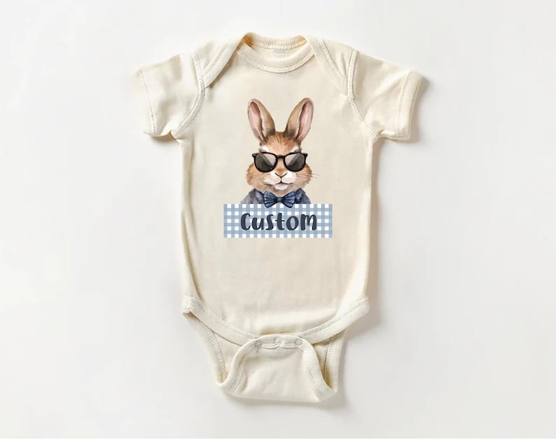 Make Easter extra special with this adorable Personalized Name Bunny baby bodysuit, baby shirt, and toddler sweatshirt! Featuring a custom Rabbit-inspired design, this cute Easter outfit is perfect for boys celebrating Easter, springtime photoshoots, and baby shower gifts.