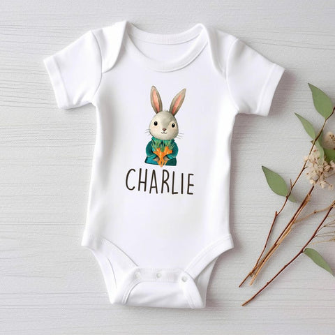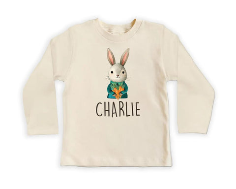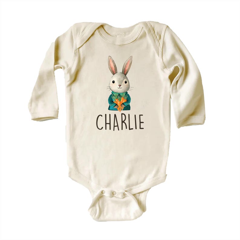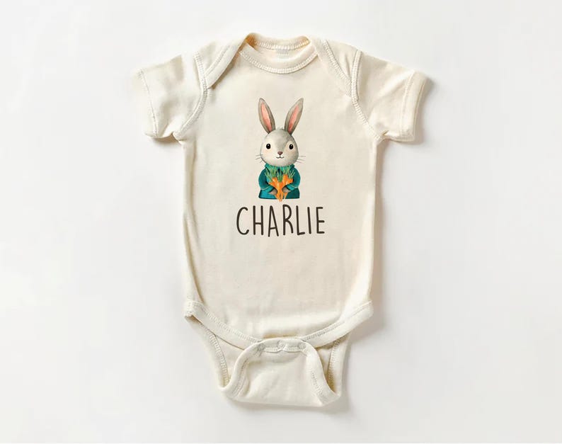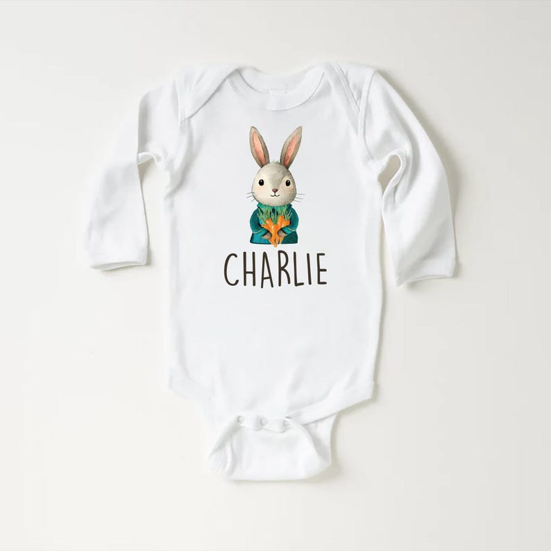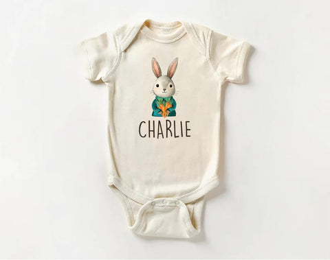 Make Easter extra special with this adorable Personalized Name Bunny Boys baby bodysuit, baby shirt, and toddler sweatshirt! Featuring a custom Easter rabbit design, this cute outfit is perfect for Easter celebrations, springtime photoshoots, and personalized gifts for little boys.