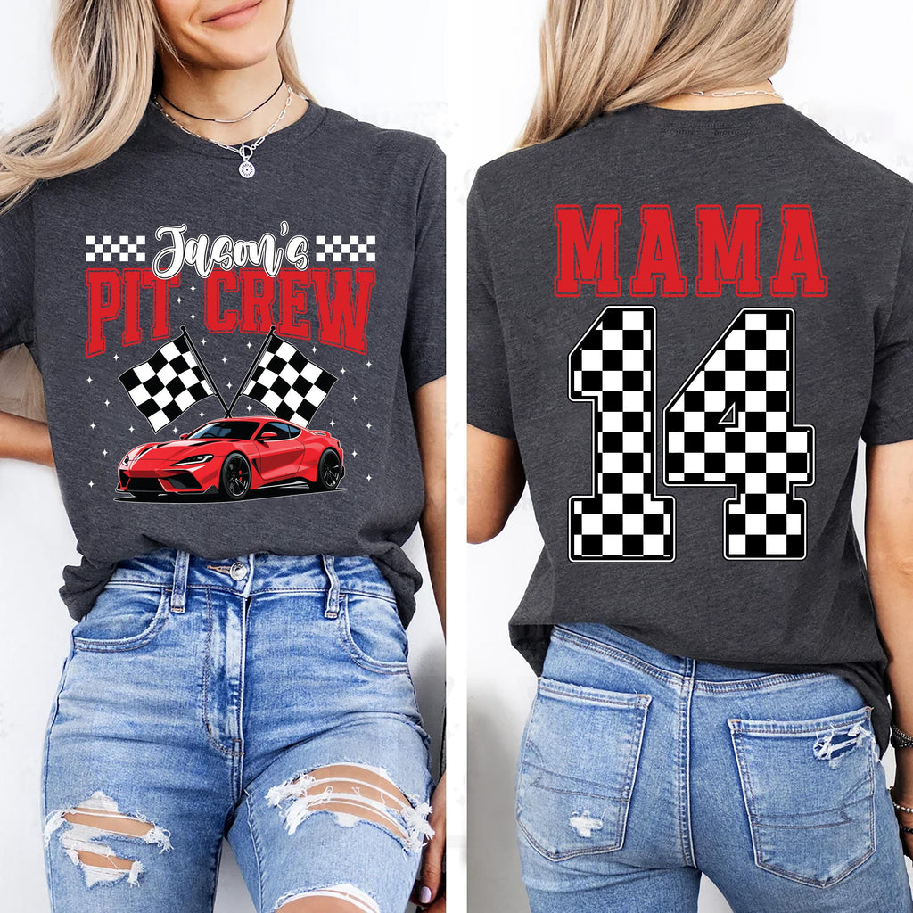 Introducing our personalized pit crew shirt, perfect for any racing enthusiast or family celebrating a race car birthday! This custom race shirt not only showcases your love for dirt track racing but also allows you to create a unique design that features your own personalized logo or message. Whether you're cheering on your favorite driver or supporting your BMX race team, this comfortable racing season tee makes for an ideal gift. Plus, itβs a fantastic way to match with your family at the track, ensuring everyone looks the part with personalized shirts for each member. Donβt miss out on the chance to stand out at the next event with our custom racecar shirt that reflects your passion for racing!